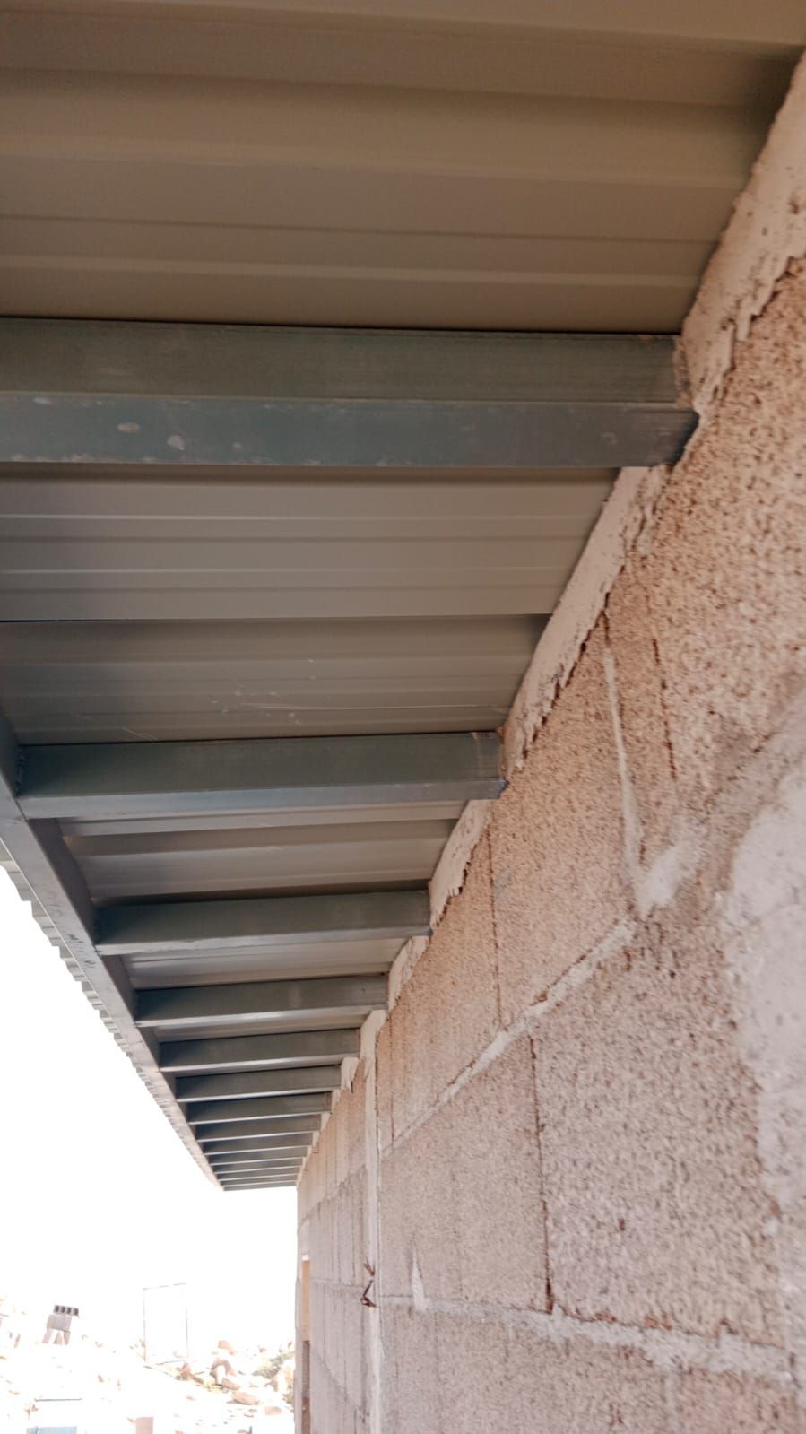 Fabricación de vivienda de 80 metros cuadrados, paredes de bloque, techo en estructura galvanizada, para lograr evitar una carga lo menos posible, falseado con aislamiento térmico, y falseado en Pladur, también se puede sustituir con machimbrado de madera, espacios abiertos y mejor aprovechamiento del espacio.